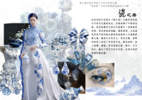 本系列设计名称为《瓷之美》,主题是青花瓷与中西式礼服的结合,灵感来源于中国青花瓷。青花瓷器是中国古代瓷器中一朵绚丽的奇葩。青花瓷胎质细腻,釉质莹润,白底蓝花,具有中国传统水墨画的效果,给人以清新素雅之感。