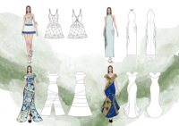 本系列设计名称为《瑰葭》,主题是大英博物馆中中国文物与中西式礼服的结合,灵感来源于网络上引起热议于共鸣的“逃出大英博物馆”这一话题。“瑰葭 ”是“归家 "瑰,是瑰宝的瑰 是美玉,是“何以赠之,琼瑰玉佩”葭,是蒹葭的葭 是蒹葭苍苍,是“所谓伊人,在水一方”。文载于物,族髓附间。运脉牵连,兴者襄见。