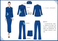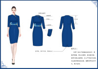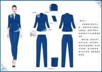 本作品名《蓝海之谜》灵感来源于海浪,“蓝”字和“浪”字相对应,海的深邃蓝及海浪的白色,突出一种沉稳、典雅、神秘的感觉。“蓝海”二字强调了职场人在职场中无限的可能性,不停前进的海浪就如同所有的职场人一样,有着强大的生机与活力,同时兼并着巨大的潜力和创新力。《蓝海之谜》系列运用了新中式元素,其中山海图案作为整个系列的特点,采用了中华优秀传统文化——刺绣手法来体现,整体服装风格刚柔并济。