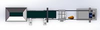 本产品是一种自动化虾线去除设备,其起始部分采用漏斗设计,方便用户将待处理的虾依次放入。随后,虾通过传送带进行传输,该传送带配备有两个红外线检测仪,用于检测虾的长度,以判断虾的体型大小。
