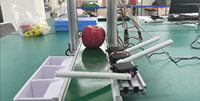 本设计由测控系统、图像识别、机械结构等部分组成。测控系统和图像识别中,采用 Py-V831 集成开发板进行苹果图像的采集和处理;通过边缘检测算法和Lab 颜色识别模型技术进行图像识别。选用 STM32F103C8T6 单片机作为测控系统的处理器,用于获取数据并控制舵机进行分拣。图像数据的传输、存储与记录通过 HG-05 蓝牙模块实现。机械结构主要包括传送装置、分拣装置以及视觉检测装置。调试结果表明,该系统运行平稳,能根据苹果的直径和颜色初步实现智能化分拣,该系统的设计与开发能提高苹果分拣效率,具有重要的应用意义和市场前景。
