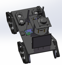 ④ 避障及雷达系统,本设计产品安装的避障模块以及雷达模块可以自动识别周围的环境,并根据雷达所发出的电磁波对目标照射并接收其回波以此来获得目标点的距离信息。拥有自动避障引路系统,基于语音和避障雷达系统,可实现实时的引路功能,方便客人在酒店环境中寻找预定的房间。