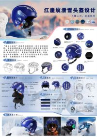 作品名称:江崖纹滑雪头盔 学校名称:成都东软学院 参赛队伍:你说的对对 参赛学生:彭湃 张雪琪 杨玉薇 指导老师:黄立中 余纯利