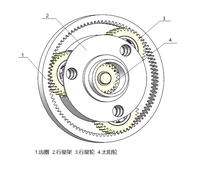前者的传动部分是由联轴器传动轴,行星摩擦轮,太阳轮组成,其工作原理是当行星联轴器传动轴转动时,行星摩擦轮也随之转动。由于太阳轮是固定在汽车的前桥或后桥上,不随轮毂的转动而转动。因此,行星摩擦轮驱动轮毂进行旋转,从而使车辆前行。