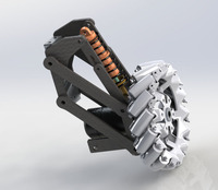 巡逻灭火机器人具有一定的灭火、减缓火势蔓延的功能。其储弹箱内可存有近50个灭火弹丸,电机推动拨齿进行供弹,灭火弹丸再通过空间连杆发射出去。空间连杆的弹链作为输弹通道,同时为了使弹丸不易卡死,我们在输弹通道的拐角处放小轴承,减小摩擦。在灭火弹丸的出口处使用限位胶轮,给弹丸提供初速度并控制弹丸的初始发射位置相同,从而得到稳定的弹道。