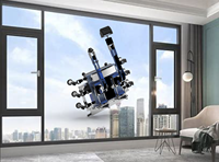 基于以上问题,本团队设计了一款晶界漫步者——智能窗户清洁机器人可以有效解决此痛点。本装置搭载了高清摄像头和蓝牙连接技术,可以识别窗户的形状大小,同时采用足底吸盘和机械手臂,对防盗窗的复杂结构进行了优化设计,满足更多用户的需求。在机器人底部,装有水箱、喷头、清洁滚筒、除尘器、清洁刮板等装置;首先,通过喷头喷水打湿窗户表面,其次,通过清洁滚筒初步对窗户表面进行清洁,随后通过除尘器除去窗户表面上的灰尘以及杂质,最后,通过清洁刮板在一次的对窗户进行清洁;在机器人顶部,安装两个机械手臂,分别为清洁滚筒机械手臂和喷头喷水机械手臂。在窗户清洁过程中,如遇到装有防盗窗等复杂结构时,首先,通过腿部气缸将机器人抬高,让机器人腿部站立在防盗窗的空隙中;随后,通过顶部两个机械手臂的配合,从而完成对窗户的清洁;同时机械臂底部设有齿轮齿条传动机构,通过齿轮齿条的传动,提高了机械臂的自由度,加快了清洁的效率,节约了能源。机器人采用六足式设计,足部装有吸盘,保证了在清洁过程中机器人的稳定性,确保在工作过程中不会意外掉落等问题;同时,机器人足部采用可升降式设计,确保机器人与窗户表面保持最佳的接触效果,提高清洁效率。机器人采用低功耗设计和节能技术,确保在完成清洁工作的同时,降低了能源损耗。
