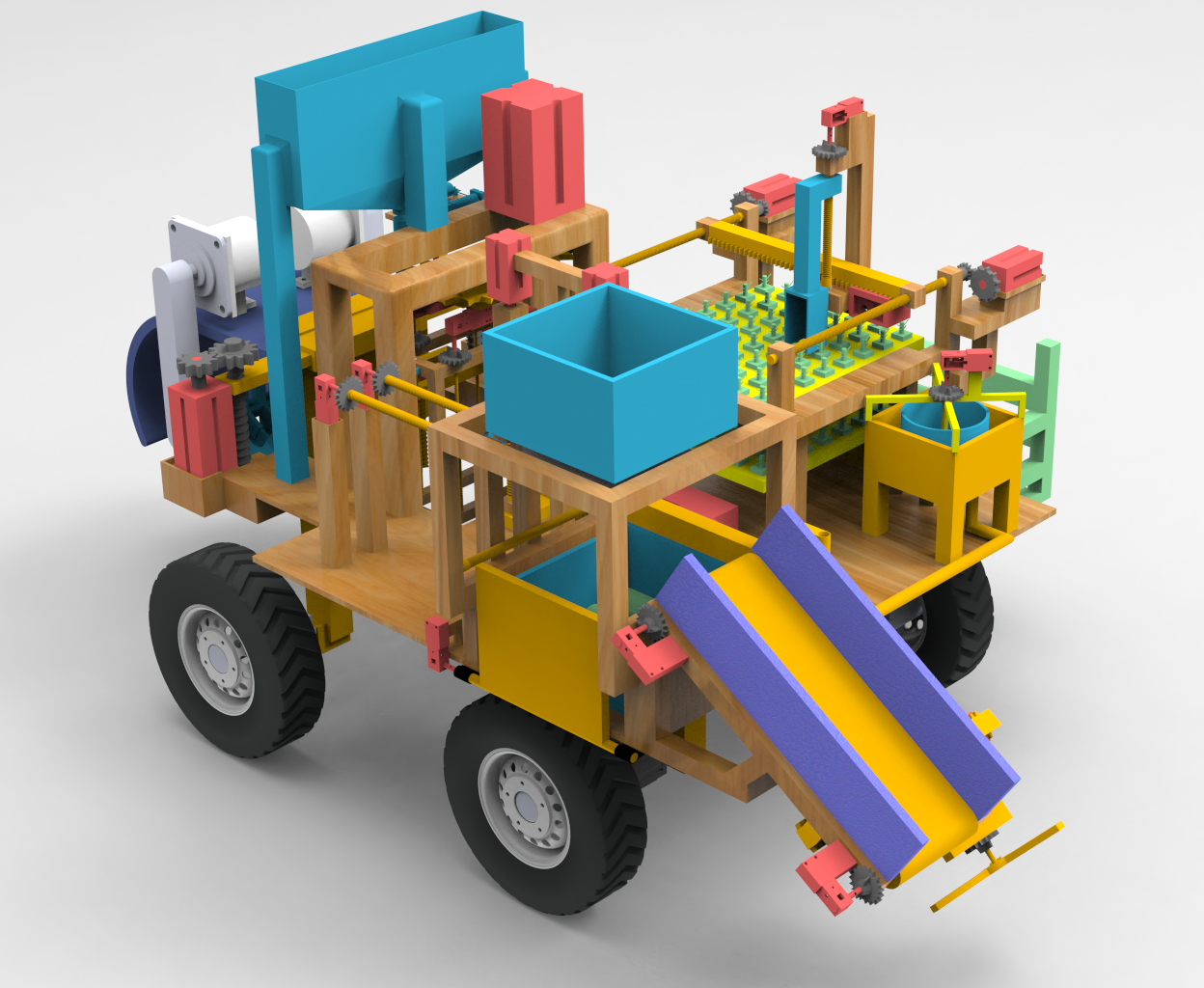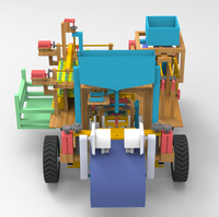 本产品是在查阅并了解莴笋相关知识及如今农业机械化的趋势和重要性,参照市场上的移栽机器来设计的一款可全自动化的种植机。本产品由行走部分与种植部分组成。行走部分由机械部分控制运动,种植部分的主体为旋转模块,四周安装了挖坑模块,施肥模块,接苗模块和覆土固土模块;主体左侧安装了施肥模块和浇水滴灌模块;右侧和后方安装了推苗模块和苗盘箱。