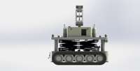 驱动模块是由电机,主减速器,半轴等组成电动机可通过电池供电,还可通过外接电源直接供电。电动机产生动力通过齿轮传动,将动力传到驱动轮上带动履带运转实现机器的运动。改变电机转速来控制机器行走快慢。履带可自行上下楼梯不需要人工一点点将机器搬运到施工位置。同时侧面安有充电口,可实现两种供电模式。安装在底盘的动力电池驱动电机,通过工人在地面用遥控器操控发出信号,接收器接收信号传给 ECU,ECU 下达指令来控制机器的移动,还可操控举升机的升降,以及机械臂的运动,达到省力安全的目的。安装在底盘上的六轴姿态传感器用来监测机器行走的路线是否为直线,在底盘以及工作平台上的三个距离传感器则可以测量机器到墙壁的距离,防止机器距离墙壁过远而无法刷到墙面。