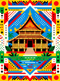 几何潜力: 鼓楼的层级、竹楼的三角结构等可自然解构为圆、三角、矩形等孟菲斯核心元素。