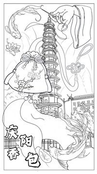 这三张作品,以复古手绘的艺术形式,为我们展现了庆阳香包的多元魅力。第一张图里,传统香包绣着娇艳梅花,与肖金塔和灵动的锦鲤相映成趣,那只执针的手仿佛在诉说香包制作的精湛技艺,每一针都是对传统的坚守;第二张图中,牡丹纹样的香包旁,是底蕴深厚的古建筑,花鸟点缀其间,让香包的雅致与地域文化的厚重融为一体;第三张图的香包以莲花为饰,搭配仙鹤、梅花,还有极具特色的传统建筑元素,把香包的吉祥寓意与庆阳的人文山水巧妙结合。