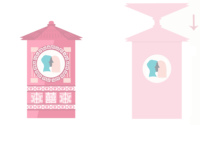 请柬的外包装:是以花轿为原形,但是配色避开了传统的大红色,而是选择了小清新的粉色。这样显得更加温馨柔和,象征了新人纯洁美好的爱情。外包装是拆装式的,最里面是一个信封,用来装请柬,将信封的封口折叠,就是花轿的顶。信封上的头像可以换成新人的照片,套上外包装,就是一个完整的花轿样式。