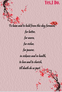 作品2:采用西方的简约主题,纹理感的背景设计,简约大气,花纹背景冲击明显,主要体现西方的浪漫唯美气息。将蝴蝶结的细麻绳解开,封面是新人的名字,梅花寓意着新人之间纯洁的爱情美好的婚姻生活。打开之后,淡淡的梅花香气扑鼻,左边是结婚邀请语,右面的婚纱照,简约大方,无过多的累赘。最后背面是新人的结婚誓言,以一句“Yes,I Do”收尾。西式请柬也采用PS软件,进行分页设计,大小为170mm*115mm,300分辨率。所有的梅花均采用浮雕设计的感觉,没有过多的修饰,简洁大方。最后,将制作好的请柬用细麻绳缠住,打上一个完美的蝴蝶结,寓意双方时刻不分离,恩爱如漆。