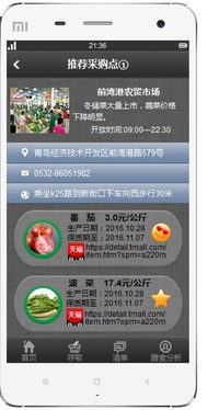 (4)本产品利用手机客户终端推送购物点及商品信息,推送功能的创新点在于本产品自带智能筛选功能。产品从用户的健康生活出发,将用户饮食喜好作为推送依据,但如果出现用户喜好食物不符合健康饮食标准,产品则不推送食物信息并将日常饮食注意事项通过手机APP反馈给用户。此功能既可以为用户健康饮食提供保障,又可以使用户及时准确的获取周边购物点和商品信息。