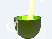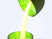 此台灯结构分为灯、发光部分、灯头和开关五部分;灯座和灯头均采用咖啡杯形状为形体,采用倒水瞬间的水流形态作为台灯发光部分,其开关设计巧妙,其打开方式与使用者放置的顺序有关,即开关设计在两杯身底部,其色彩主以绿色为主,绿色象征生命,以水和生命结合,象征生命离不开水。