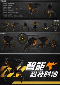 该产品是一款以机械为主题的智能科技时钟,产品功能上与FM网络广播电台相结合,在在紧张忙碌的生活中也可以得到适当放松,产品的造型结构,以炫酷的外观和棱角分明的机械设计感来引起消费者的喜爱和兴趣。