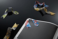 本产品小巧精致可以当书签,折叠时可以当书夹实用,它可以夹住书,防止书经常翻看之后,书自动合上。该实用书签可以根据书本的大小,以及使用者的看书习惯,进行调整折叠的方式。该书签采用的原料初步定为记忆金属。此项目设计出的产品,创新点在于它有多项功能,并不是简单的书签,也不是简单的书夹,实现了书签、书夹及一些小的作用相结合的一款产品。折叠起来之后,小巧轻便,可以当书签,具有随意折叠的创新结构。书签夹住书后,可以固定书页,防止书本翻动,且不影响正常阅读。