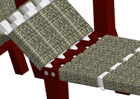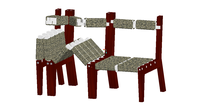 第二结构是转动副结构,座板和靠背零件的左右两端均有伸出孔,同时支架的座板位置以及靠背位置有打孔,这两者均为了插入销钉而设计;左边的支架通过销钉连接座板和靠背零件,然后座板和靠背零件通过销钉连接相对称的座板和靠背零件,最后再与右边的支架进行销钉连接。结构环环相连,紧密联系,实现长椅的折叠运动。