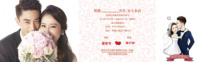 2、前后封面以简单循环花纹作为底,主封面一对可爱的情侣娃娃及邀请中英文结合,后封面以英文爱心镶嵌一对结婚新人。