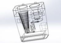 以上的图片是本净伞无痕机的设计图,可以清楚的看到本净伞无痕机的主体结构,主要工作器件是两个雨伞固定架,左侧为长柄伞固定架,右侧为折叠伞固定架,两个固定架分别由两个电机驱动,当雨伞插入固定架中时,位于顶部盖板上的两个传感器便发送信号给电控系统,此时电机通过皮带传动机构驱动雨伞固定架,当固定架转动时,雨伞上的水在离心力的作用下通过雨伞固定架侧壁和底部的排水孔甩出到位于固定架外侧包围着固定架的防水罩里,水再从防水罩底部的排水孔流到接水抽屉里。