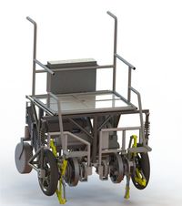 对于高端的爬楼轮椅有以下不足:虽然一些爬楼装置智能化水平较高,但是价格比较昂贵,部分价格相对便宜的爬楼轮椅,需要第三者的的操控才可以完成上下楼任务,无法满足“让老年人和残疾人自主活动”的设想。本产品旨在解决残疾人及老年人出行不便的问题,采用的创造性的机械支架仿四轮和电力驱动系统,到目前为止,已经能够做到由1人操作面板按钮即可独自一人完成上下楼梯的任务,这是目前市场上其他轮椅所不能完成的。残疾人或腿脚不便的老年人在使用了我们的电动智爬楼轮椅以后,再也不用担心外出的时候遇上障碍,可以和正常人一样自由行动,开始崭新的生活。