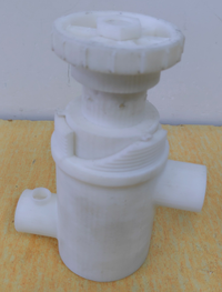 该装置总长100mm,腔内直径45mm,高123.29mm,正常水压供水范围0.14MPa以上灵活使用,在断水时能够自定关闭。