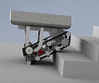 小轮通过杆与侧板进行连接及电机传动对其进行控制,调整车的角度,方便车在上楼梯前抬高前部,搭上第一级台阶;小轮可以接受来自车后的力,实现自动转向,避免了大轮收放带来的麻烦。