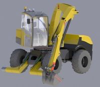 挖掘设备由工作装置、上车、前底盘、后底盘、回转机构和液压系统组成。设备总高3.4米,总宽2.48米,总长5米。挖掘高度7米,挖掘深度3米,挖掘直径6米。