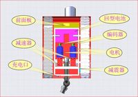 整体组成分为:电池、离合器、减速器、水炮、减震器、履带、主板、摄像头、电动机、摄像头