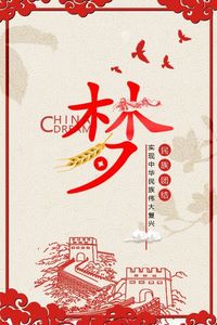 “中国梦”剪纸红色文化创意设计,紧扣大赛“红色文化”主题。剪纸艺术是汉族传统的民间工艺,匠心,灵巧,巧妙。它源远流长,经久不衰,是中国民间艺术中的瑰宝,已成为世界艺术宝库中的一种珍藏。那质朴、生动有趣的艺术造型,有着独特的艺术魅力。其特点主要表现在空间观念的二维性,刀味纸感,线条与装饰,写意与寓意等许多方面,符合匠心·民族魂文化,作为新时代大学生的我们理应传承发扬,因此我在作品中融入了剪纸艺术。“中国梦”这三个字表达了我们对于自己的国家、民族和自己个人未来前景的美好梦想,是“国家富强、民族振兴、人民幸福”。红色代表着吉祥、喜庆、热烈、奔放、激情、斗志、革命等。因此,我以 “中国梦”三个字为主要内容,辅剪纸艺术,将红色作为主色调,突出主题,然后加入我国最有代表性的红色文化建筑:天坛、北京天安门和万里长城。这四张海报其内涵是传承发扬我国传统文化,延续匠心精神,为早日实现中华民族伟大复兴而奋斗。