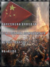 此作品以红色为背景,红旗为主题飘荡着祖国的希望,象征红色文化。