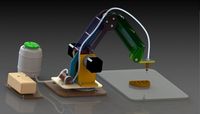 工业型3D打印机主要材料是金属以及先进工业陶瓷等工业类材料。而桌面型则主要涉及非金属材料,高分子聚合物材料等,如ABS、PLA,食材材料如糖果,奶油,面糊等[1]。我国在这些领域的发展,包括更广泛的材料应用,和新式结构的创新设计等方面匮乏。针对此现状,本团队创新打印结构,设计了一种基于四自由度的机械臂式的桌面食品3D打印机。