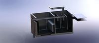 机器人整体结构采用中间处理双翼结构,阻力小稳定高,机翼两端配有两个浮力舱并且添加蹼结构,保证了机器人的平稳漂浮。双翼下方采用小电机驱动螺旋桨装置。船舱内部分为四个部分,前端位置用于放置轮旋抽取式抽水机,中后端分为上中下三个舱室,顶舱为控制中心与离心机,中舱为油水分离物理处理舱,底舱用于分离后储存原油。与现有清理油污方式相比较具有结构简单,清理效率高等优点,具有广阔的市场前景。