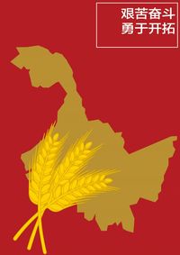 第二张是以北大荒精神为主题 北大荒精神,是黑龙江垦区的广大人民群众在六十多年的开发建设中,用青春与汗水、鲜血和生命,在特定历史条件和极其艰苦的环境下培育和锤炼出来的,是英雄的北大荒人的政治觉悟、精神境界、道德情操、意志品格、行为规范和工作作风的集中体现。背景色选用红色 体现出深刻的印象 文字信息为艰苦奋斗勇于开拓 主要画面为北大荒所涉及的地形的地形图以及代表物 小麦 小麦增产千亿斤让中国成为粮食大国 后被中国经丝绸之路传染的中东;又被阿拉伯人打过的意大利、西班牙等;又被西班牙人打过的南美,阿根廷、墨西哥等地,这些地方都面条文化发达。再配上北大荒的地形图简直不能太完美了 所以我选小麦作为主要画面