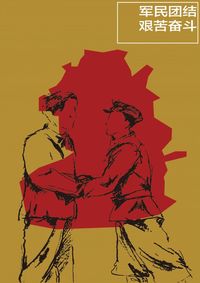 在艰苦的革命条件下,当培育和铸造了红色精神,其中最具有时代特征、影响最大、最有代表性的是坚定信念、艰苦奋斗;实事求是、敢闯新路;依靠群众、勇于胜利,的井冈山精神。背景颜色选取了黄色 文字信息为军民团结 艰苦奋斗 因为要有严肃的心态 所以用白色边框显得更加庄重严肃 主要画面为井冈山地形图以及井冈山会师 选取红色作为地形的的颜色 把井冈山大概轮廓描绘出来 进行概括