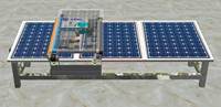 针对目前大型光伏组件清洗主要靠人工完成,费时费力,效率低下,水资源浪费十分严 重等问题,本设计主要由清洁装置、控制装置、储能电池组、支撑架、定位架、太阳能电池 板及固定太阳能板的支架组成光伏板自动清洁机器人解决以上问题。支撑架主要起支撑作用和 放置蓄电池和光伏控制器、步进电机驱动器,控制器。支撑架上方安装光伏板用于自给供电, 底部与清洁装置定位架相连接,定位架两侧安置步进电机用于驱动清洁装置,所述的步进电 机垂直固定在定位架上,电机轴与特制的直径 60mm 的橡胶轮配合,步进电机控制器与驱动 器控制步进电机,通过手机遥控开关机器人在上述动力系统的驱动下带动清洁装置工作。