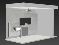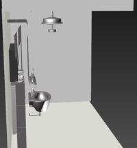 智能浴室由防水显示屏与自动伸缩浴头组成。防水显示屏主要用于温度调控,升降约束,观赏影视等作用,设有无线联网装置,实现所需娱乐功能,也可手机APP预约进行工作;自动伸缩浴头采用大小喷头镶嵌技术,控制屏幕使其到所需位置,可自动弹出小浴头进行手动冲洗,保证用户安全舒适性。