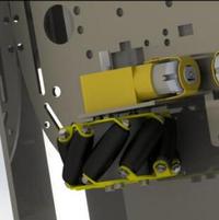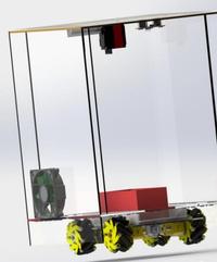 为方便查看垃圾袋剩余空间,桶外壁为透明玻璃材质,实际材质可选择亚克力或者不锈钢等。侧边还布有通过排风扇,再换袋时将气体从内部吸到外界,从而使袋子完全和桶内壁吸合,方便充分利用内部空间。底部的设计在四周使用高亮LED进行照明,亮度触摸可调。同时底部可以进行无线充电。将电机布置在四个角落,增加底部重量,使得行走更加平稳。使用超声波测距模块,距离更准确,不但可以感应开关,如有需要甚至可以计算手与垃圾桶之间的距离(精度高)。使用舵机进行开关盖,舵机响应速度快,扭矩可达到20KG/CM,精准可靠。