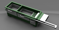 该装置的箱体部分从左至右分为第一集料腔、第二集料腔和放置腔。经过拆解的废旧电池主要包括电池废液、电极板、电池盒盖等。将该装置放于大型拆解机的底部,让拆解机拆解下的不同部分下落到相应的箱体中,通过与不断运动的拆解机的配合实现对废旧电池的分拣回收。在废液的处理上,过滤板、网架等结构可以实现液固分离,最终通过集液罐收集废液,其他小部分固体残余废液通过排液管排出,然后由人工在非工作未出处对装置内部的废料和废液进行集中处理,避免了抛撒到地面造成环境污染。电池盒盖、电极板等留在集料腔中,装满的腔体可以随时被更换,从而实现装置的重复利用。