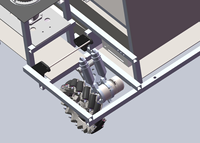 供弹系统,采用底部拨弹,再通过弹道传送发射的方式,可以很好地扩大容量并降低发射器重心,减少了发射器运行时不必要的麻烦。