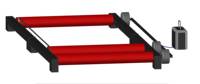 2滚动体部分:如图所示,滚动体部分共有三个滚筒组成,滚筒采用可满足足够强度的快拆方式安装在支架上,易于安装和拆卸,也便于调节前轮滚筒的位置,滚筒外壳本身采用铝合金材料,铝合金材料的强度高,重量低,以减轻整体骑行台重量;滚筒内部为发电机结构,当内圈与外圈发生相对滑动的时候,发电机进行工作可以向外输出电力,而滚筒内外圈是否发生相对滑动可由支架上旋塞进行控制调节,不旋入旋塞,内外圈不发生相对滑动,彼此同轴转动,发电机不工作,同时降低骑行阻力,使用者可根据实际需求,分别调控三个发电机是否工作,获得不同的阻力感,模拟出了不同路型感觉;前方两个滚筒侧面装有带轮,通过加装皮带筋,将动力传递给前滚筒,以获得更加真实的骑行体验,保持骑行者身体平衡的同时,可模拟冲刺,摇车等骑车动作,提升骑行台骑行体验。