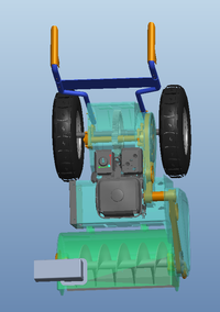 中国北部地区冬季时长相对南方地区更长,雪量也更大,加之北部地区冬季.温度较低,导致积雪长时间堆积不易融化,经过车辆行人的碾压后形成冰层,造成人们生活上的交通不便并且人们的个人安全也会受到不小的影响,特别是为老人和小孩的安全问题埋下隐患。而小型的清雪机兼实用性、便携性于一身,并且价格适中,适用场景广泛,容易得到推广,因此,对此类小型手推除雪设备的研发是非常有必要的。目前,我国除在有限的几条高速公路及飞机场配备有清雪机械外,其它道路及城市居民生活区的积雪还主要依靠人力来清除,而由于人工除雪效率很低、耗时费工,因而绝大部分积雪只能靠自然融化,这样就使得我国北方大部分地区在下过一场大雪后,道路交通事故频频发生,造成巨大的经济损失和人员伤亡,有的地方的交通甚至还由于积雪而发生阻断现象,给这些地区的居民生活带来了极大的不便,也对这些地区的经济发展产生了不良的影响。因此,实现清除冰雪的机械化尤为重要。