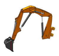组合挖掘装载机由可拉伸支架,转动支架,挖掘工作装置,驾驶室,推土装载工作装置,推土装载端可更换的装置(如挖掘斗、装载斗、破碎锤等)组成。