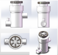 该装置总长100mm,腔内直径45mm,高123,29mm,家庭正常水压供水范围0.14MPa以上灵活使用,在断水时弹簧的作用系阀芯上的滑块将沿着导轨旋转向下移动实现自动关闭。