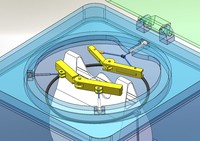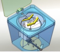 本产品名称为:无感换袋垃圾桶,具有效率较高、成本较低、清洁环保、美观等特征。目的在于解放人们在垃圾桶套袋过程中的繁琐又肮脏的工作,为垃圾分类以及无害化处理创造了新的打开方式。且凭借其时尚智能、便捷干净的优点。一种无感换袋的垃圾桶结构简单,成本低廉,使用方便,不仅可以放一卷垃圾袋使用很久,还可以用脚轻轻踩踏一下完成无感换袋,既环保又快捷,契合大众的需求,可以有效地争取了更多的时间。本装置运用了纯机械结构,无其他能源介入,大大节省了能源,还大大减少了故障率。为垃圾桶增加了无感换袋的功能,在垃圾桶盖部有垃圾袋打开装置能够将预先装好的垃圾袋抽出并打开替代取走的垃圾袋套在垃圾桶上。为了制作方便,垃圾桶桶身为逆向扫描生成三维图,省去了三维建模的过程,制作食物时,再将其3D打印出来。垃圾桶内部的垃圾袋收纳盒以及所有连杆撑杆均通过3D打印制作。
