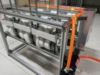 (1)利用滚轮传送牡丹根,下面滚轮为主动轮,上面滚轮上加有弹簧可减少不规则牡丹根通过滚轮受到的损伤。传送装置采用分档调控,以适应条件所需。加入滚轮刀,和压扁装置以便于后面的抽筋过程,在滚刀轮与传送轮之间增加缓冲弹簧防止牡丹根过大导致卡机。