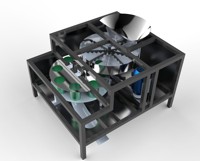 于是为了提高生产效率,解放更多人力资源,提高橡胶产量,我们设计制作了一种全新的仅需加土肥和放置育苗袋即可完成自动搅拌,自动装袋,自动出袋等一系列任务的橡胶树育苗袋装土装置。