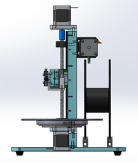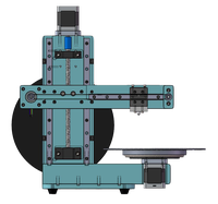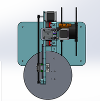 设计原理:该圆柱坐标3D打印机总共有4个电机,一个是用于该坐标系R极轴,控制极轴运动距离;一个用在坐标系角度轴,控制打印平台运动角度;一个是用于该坐标系Z轴,控制Z轴上下运动;剩余一个运用于输送打印材料到喷头。不同于常见的3D打印机有X,Y轴,该3D打印机将X,Y的直线运动转换成了一个半径与角度定位的运动方式,此款打印机中的θ角度轴是做的360°的圆周运动,在平台下配置一个电动作为旋转台,对设计成圆形的打印底板进行准确的旋转角度的控制.设打印底板的原点位置为圆柱坐标的底面圆心位置.设备中的 R极轴为往复直线运动,设计时,定义R极轴经过基板原点,并且R极轴原点即为坐标系的原点.半径R方向由同步齿形带传动,定位方向由直线导轨保持。旋转角由电机直接控制,旋转打印平台由轴承保持。Z轴传动由丝杆传动,定位方向由直线导轨保持。