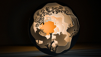 这个作品是由C4D为主要制作软件,镂空的纸雕风格。做了5层,分别 是杏花村雨、金银花开、巨鹿之战、双鹿、腾鹿。素材来源是巨鹿县。