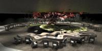 入口的大门选择了古风的拱门,用了繁富的花纹进行装饰,同时它的前台采用了大理石构造,左侧设置了特色诗词的装饰背景板,并放置了茶台以供休息等候。没有喧嚣与繁杂,一派宁静悠远。 餐厅的中心开放区域采用了曲水流觞的形式,中间用玻璃隔断隔出了一片小空间做成中心花园,自然与人文的相互交融,仿佛真的回到了几百年前,同文人墨客一起举杯畅饮。未饮美酒,却已不自觉心醉神迷。包厢分为大小两种,都经过了精心的布置。整个包厢的外墙均采用了落地玻璃的结构,方便用餐的同时欣赏窗外的美景,仿佛天然环境包裹。小包厢的桌子采用了杏树风格的吊灯,吊灯为原木制作,使杏树主题更加的丰富,同时又有别具一格的特色。大包厢的里墙设置了圆形小开窗,并放置了古风隔断,考虑到丰富的历史背景还运用了玉质的摆件显得更为雅致。精妙的沙发、简单的茶具足以再现古风古韵。
