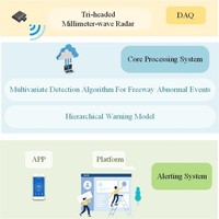 首先,利用安装在路侧的多个毫米波雷达进行全天候、高精度的全息感知,实时采集高速公路各个潜在危险路段的车辆信息并通过阈值法对采集的原始数据进行预处理。随后,基于加州算法、TTC碰撞时间以及指数平滑等知识设计了高速公路事件综合感知算法来实时检测前方车辆事件,将感知结果代入分级预警模型,最后通过“Usafeway”APP及综合感知预警平台实现更个性化的车辆分级预警提示,协助驾驶员安全高效的驾驶。